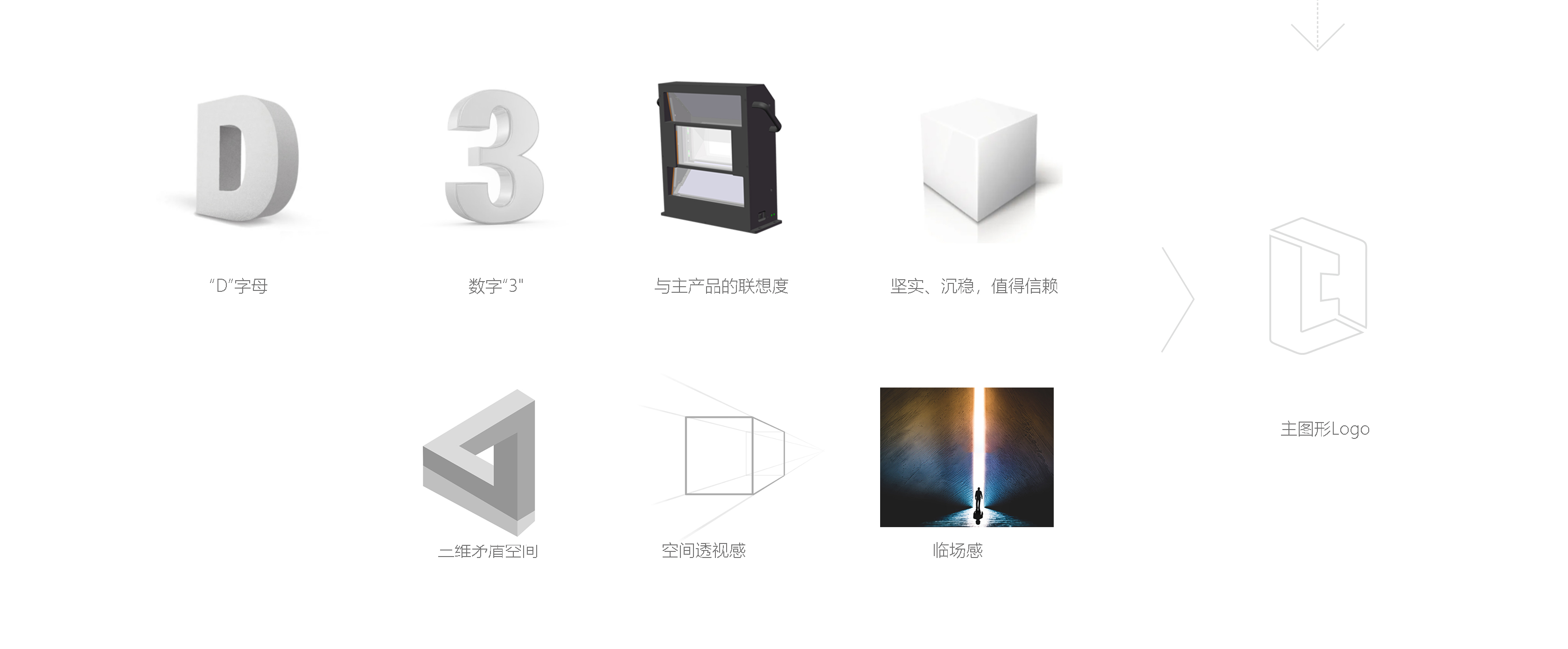 Logo方案的创意也围绕着如何体现“3D”这一概念展开。